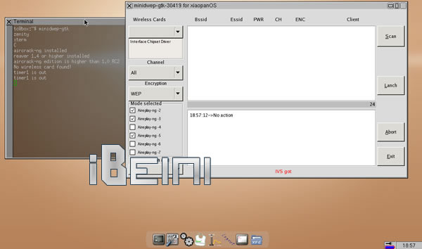 • Minidwep must be launched from the RootShell. Type minidwep-gtk